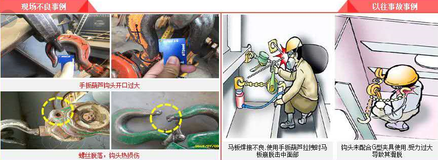 造船廠負(fù)責(zé)安全監(jiān)管的工作人員經(jīng)過調(diào)查問詢,發(fā)現(xiàn)工人在使用手扳葫蘆過程中存在著各種各樣的問題。