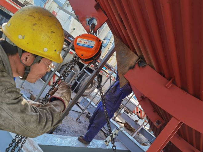 上圖為鍋爐本體分離器吊裝作業(yè)